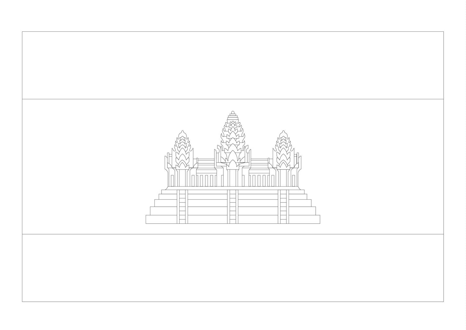ציור של דגל קמבודיה לצביעה, איור של דגל קמבודיה להדפסה לצביעה לילדים