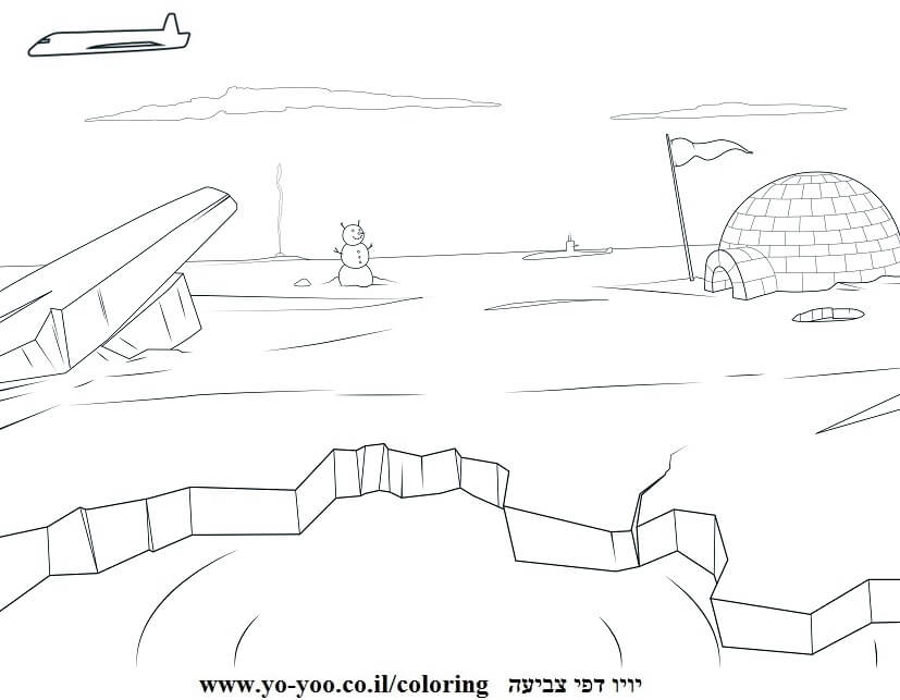 קוטב צפוני - תמונה של קוטב צפוני לצביעה עם איגלו , קרחונים , איש שלג ועוד פרטים לצביעה לילדים. דף צביעה להדפסה או להורדה בחינם ! כנסו והתחילו לצבוע !