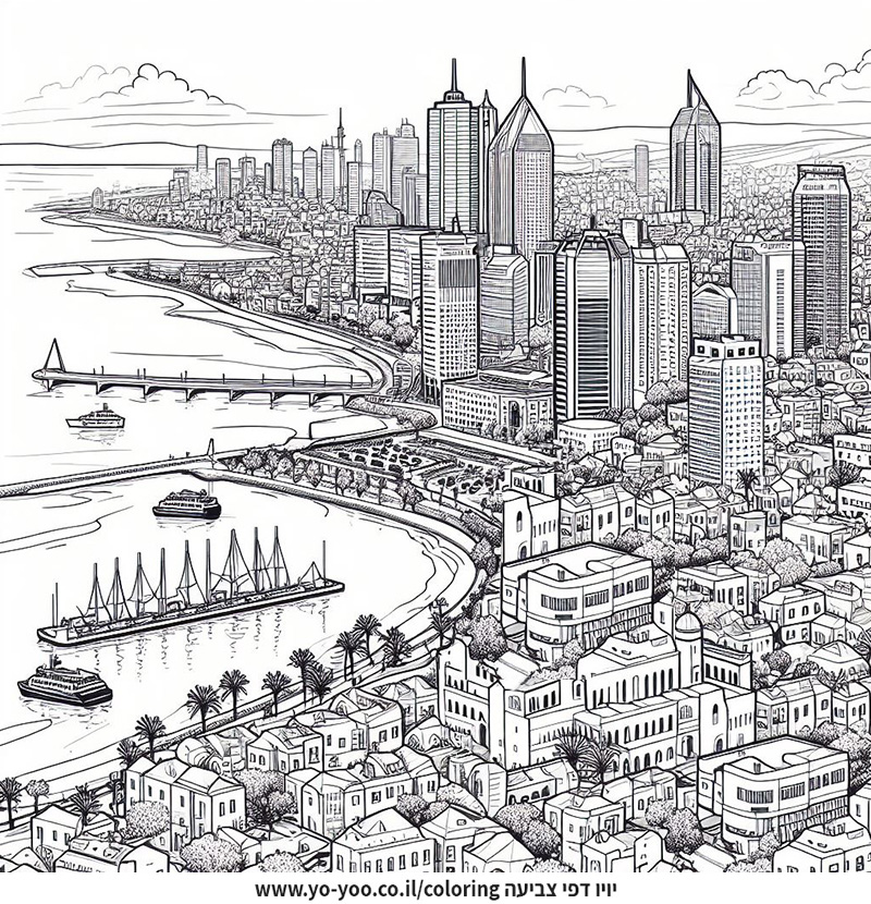 דף צביעה של חיפה - דף צביעה של חיפה להדפסה, ציור של חיפה לצביעה בחינם