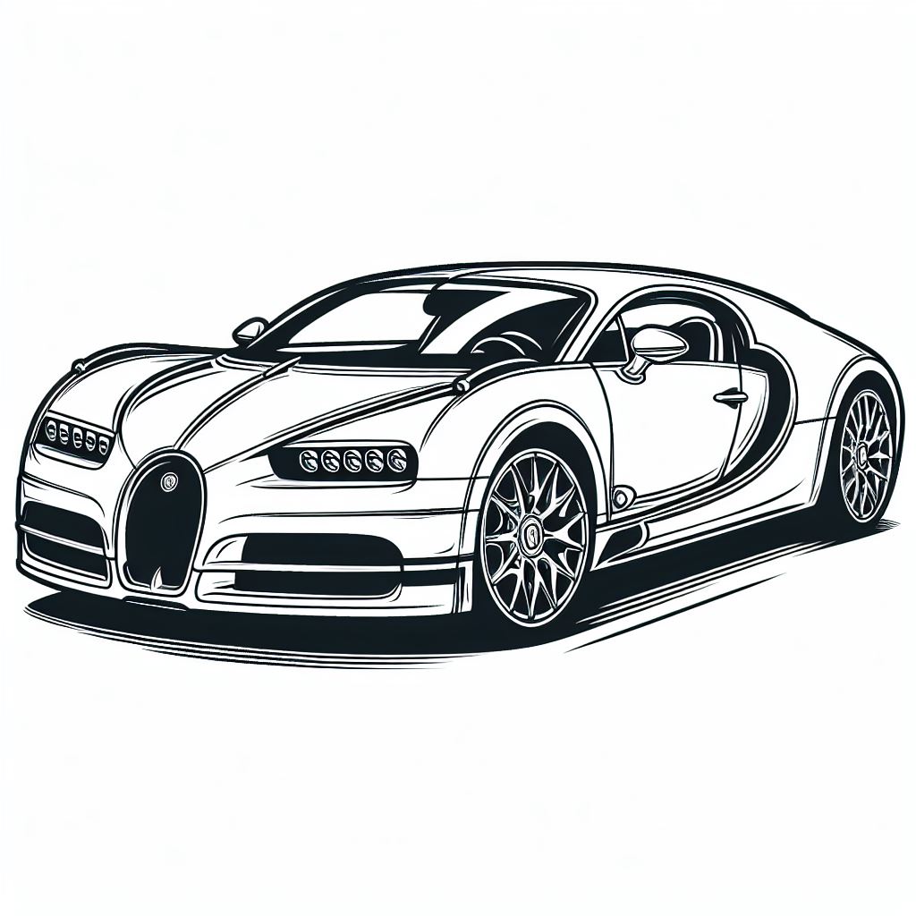 דף צביעה של מכונית בוגאטי להדפסה או להורדה בחינם, למחשב או לטלפון (אפשר להדפיס גם מהטלפון) ציור של מכונית בוגאטי לצביעה, איור של מכונית בוגאטי להדפסה לצביעה לילדים