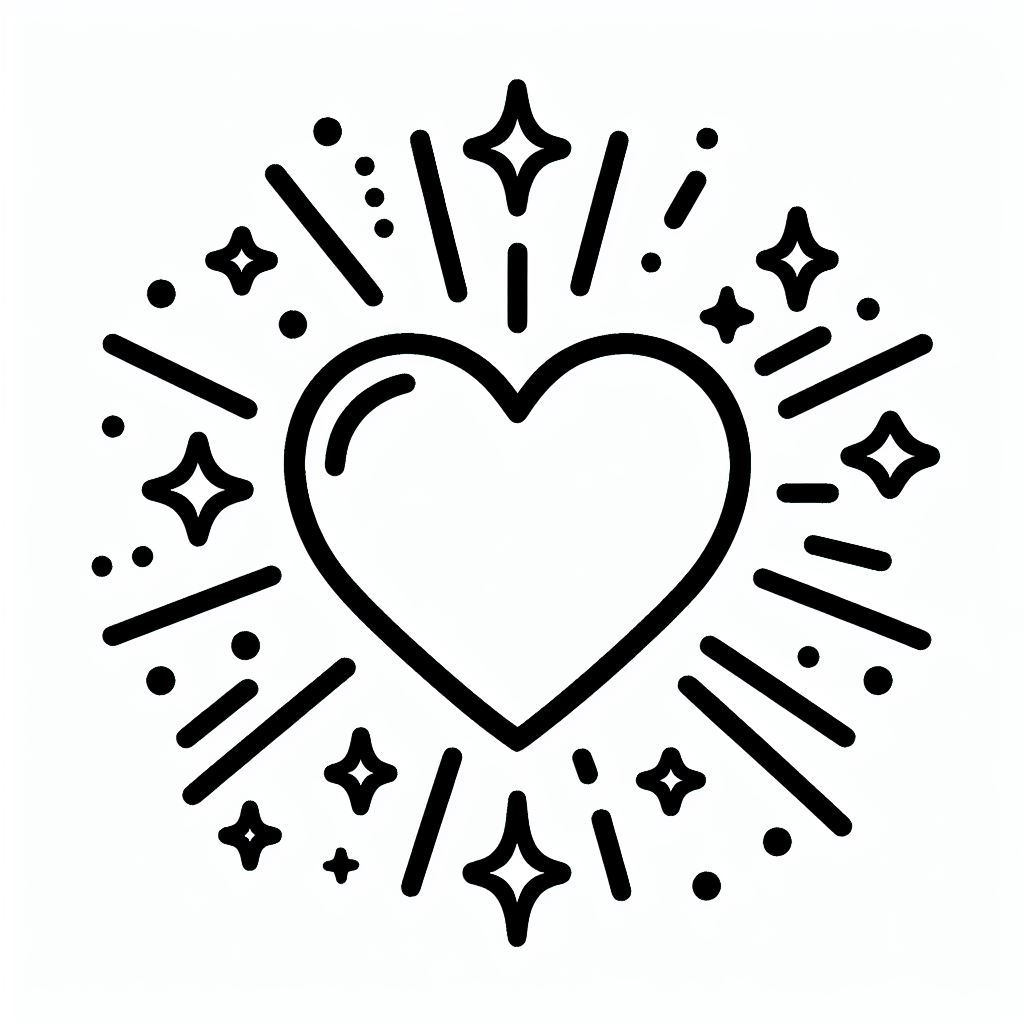 לב זורח זוהר לצביעה - דף צביעה של לב זורח זוהר להדפסה, ציור של לב זורח זוהר לצביעה בחינם