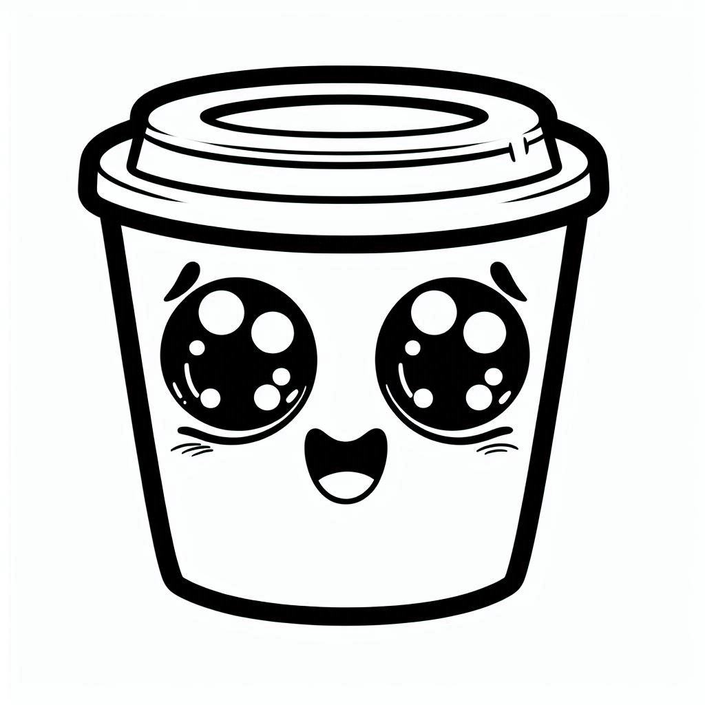 דף צביעה תמונה של קפה עם עיניים גדולות לצביעה בחינם להדפסה או צביעה אונליין