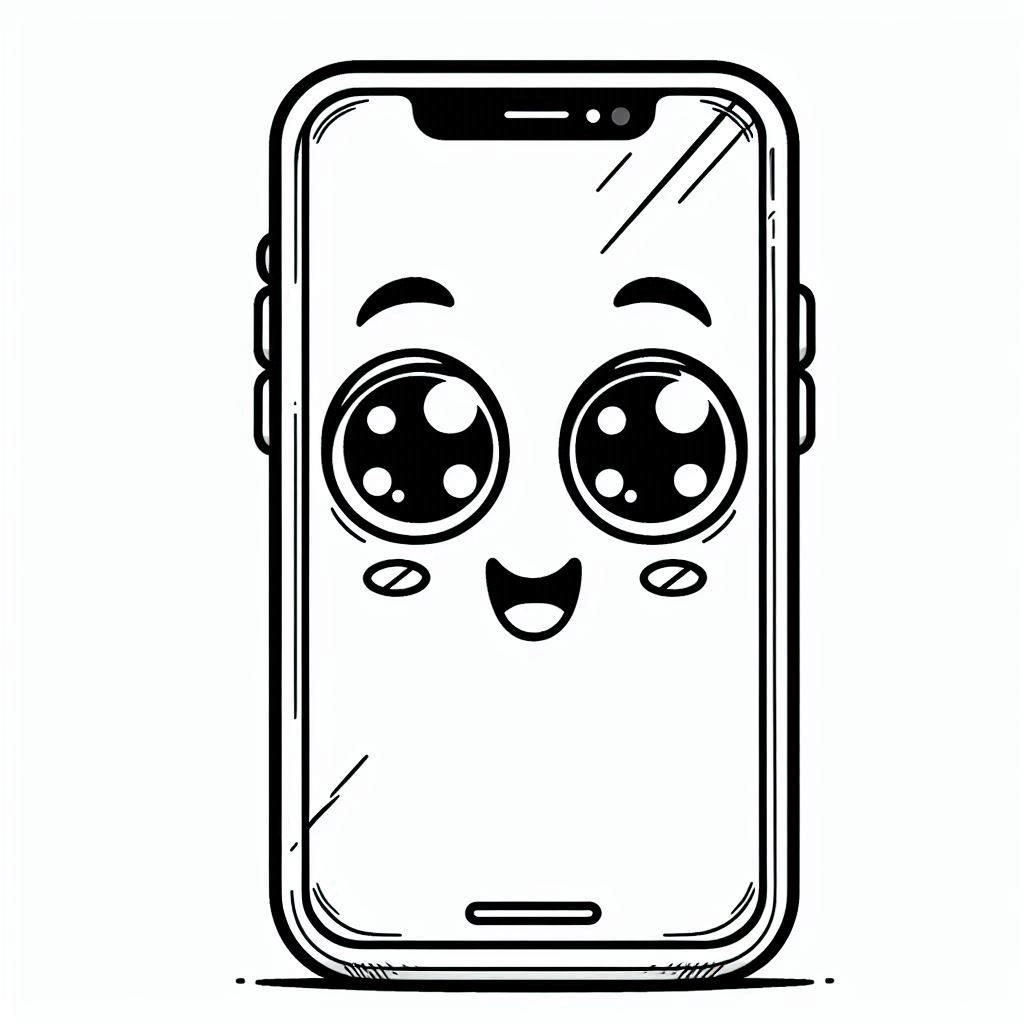 דף צביעה תמונה של טלפון עם עיניים גדולות לצביעה בחינם להדפסה או צביעה אונליין