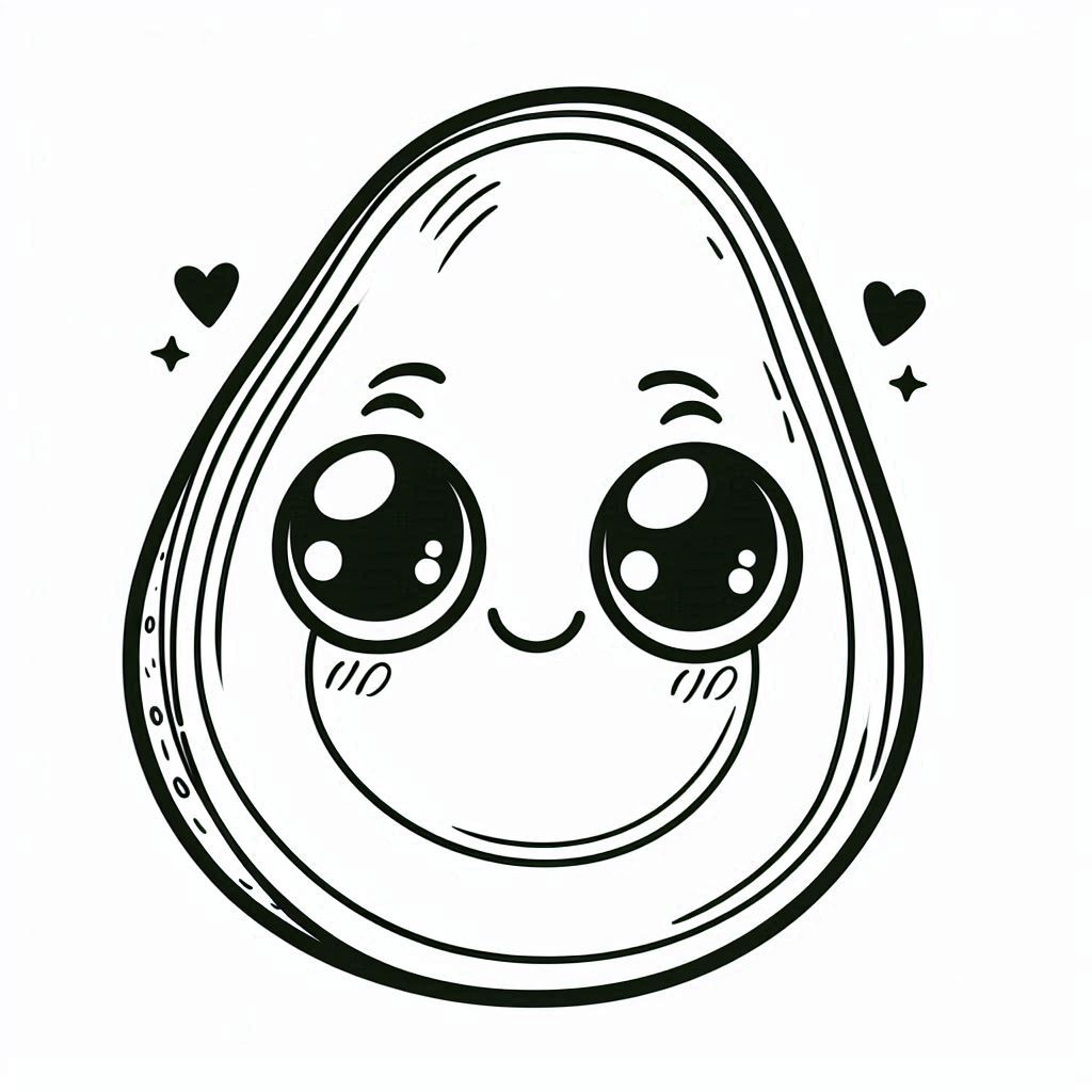 דף צביעה תמונה של אבוקדו עם עיניים גדולות לצביעה בחינם להדפסה או צביעה אונליין