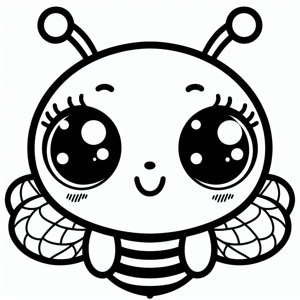 דף צביעה תמונה של דבורה עם עיניים גדולות לצביעה בחינם להדפסה או צביעה אונליין