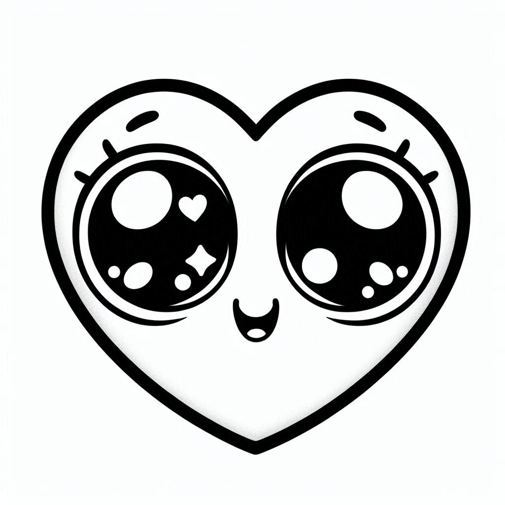 דף צביעה תמונה של פרצוף לב עם עיניים גדולות לצביעה בחינם להדפסה או צביעה אונליין