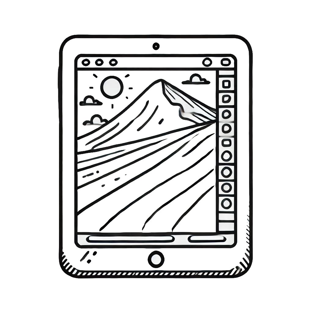 ציור של טאבלט לצביעה, איור של טאבלט להדפסה לצביעה לילדים
