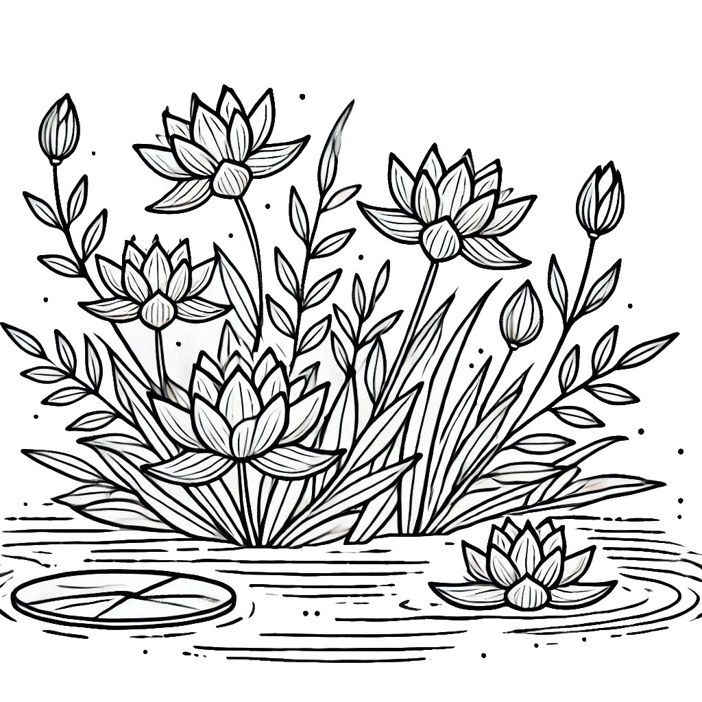 דף צביעה להדפסה או להורדה חינם של פרחי מים