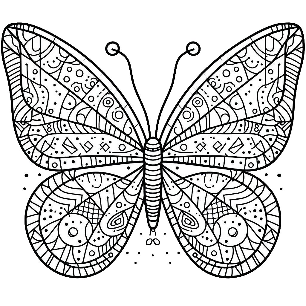 פרפר עם צורות לצביעה - דף צביעה של פרפר עם צורות להדפסה, ציור של פרפר עם צורות לצביעה בחינם