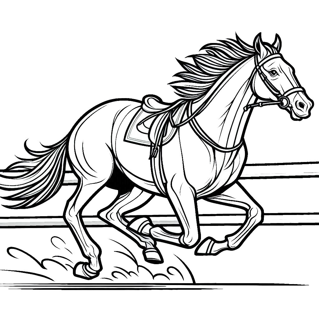 דף צביעה להדפסה או להורדה חינם של סוס מרוץ