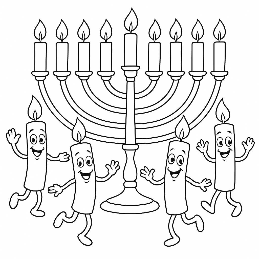 דף צביעה של חנוכייה ונרות להדפסה בחינם