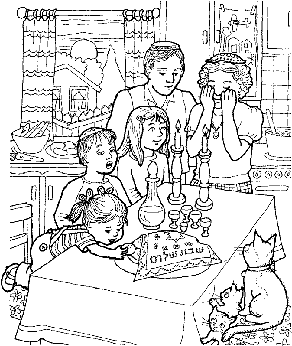 דף צביעה לשבת - תמונה לצביעה ליום שבת , דף צביעה של קבלת שבת , משפחה ביום שבת , הדלקת נרות לשבת. דף צביעה להדפסה או להורדה בחינם ! כנסו והתחילו לצבוע !