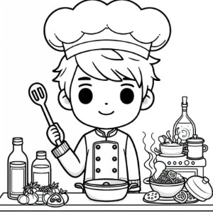 דף צביעה של ילד מבשל