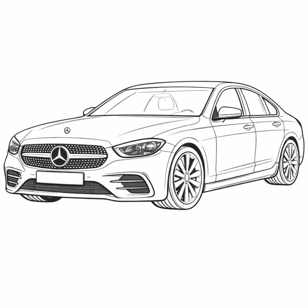 ציור של מכונית מרצדס לצביעה אונליין במחשב או בטלפון ללא להדפסה וללא הורדה