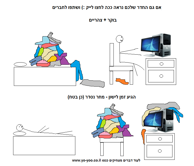 איך אני יושב קומיקס בעברית דבורה בכיתה צילום לתעודה אותה חולצה חדר מבולגן