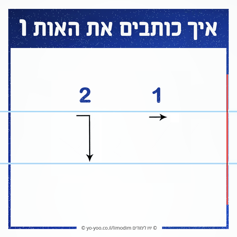 איך כותבים את האות ו בכתב דפוס, איך לכתוב את האות ו בעברית, תמונה של כתיבת האות ו בעברית בחינם להורדה או להדפסה