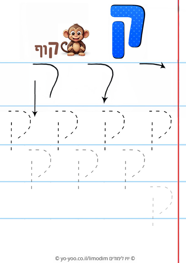 תרגול כתיבת האות ק בכתב דפוס
