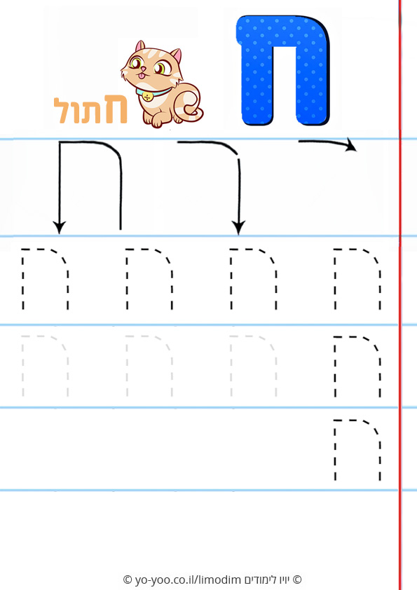 תרגול כתיבת האות ח בכתב דפוס