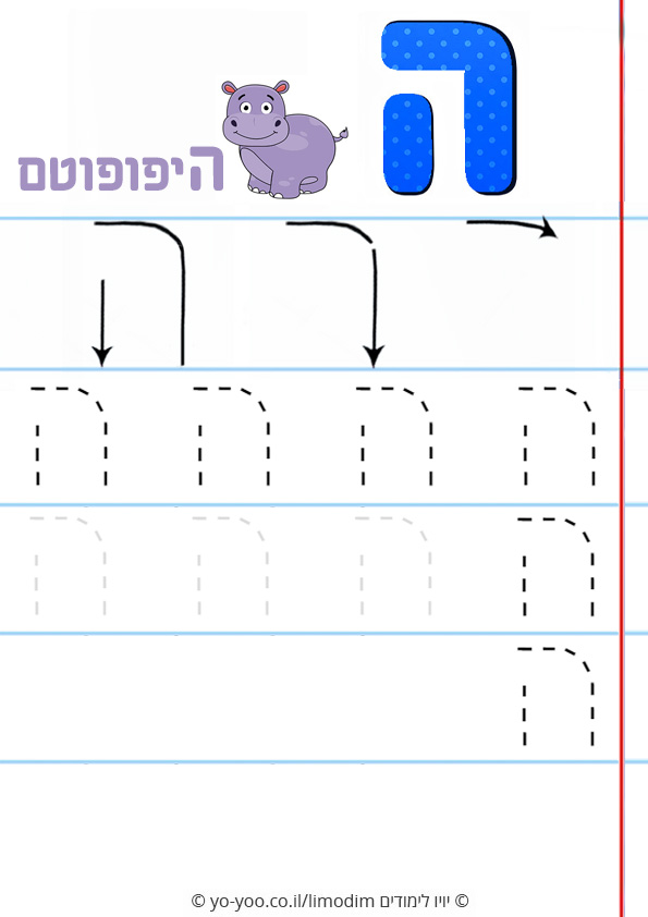 תרגול כתיבת האות ה בכתב דפוס