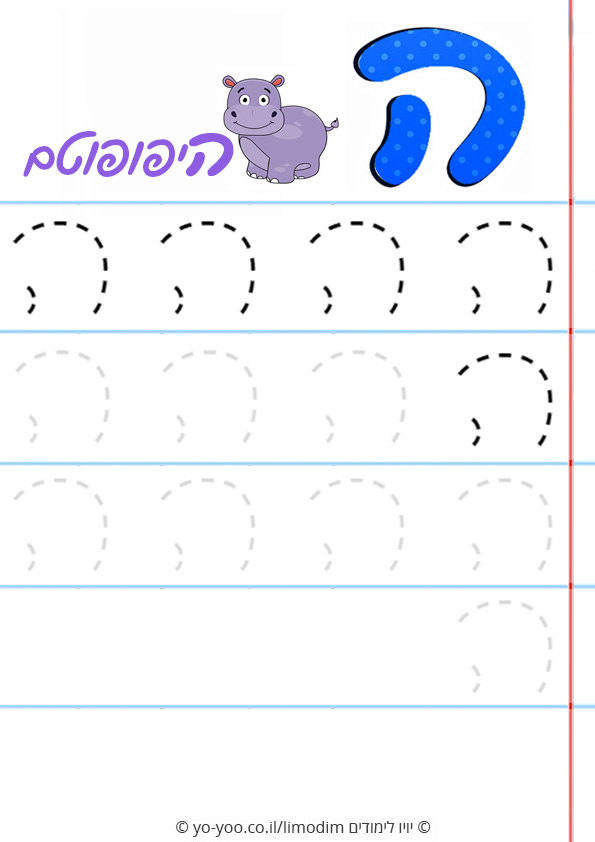 ציור של כתיבת האות ה בכתב יד להדפסה בחינם