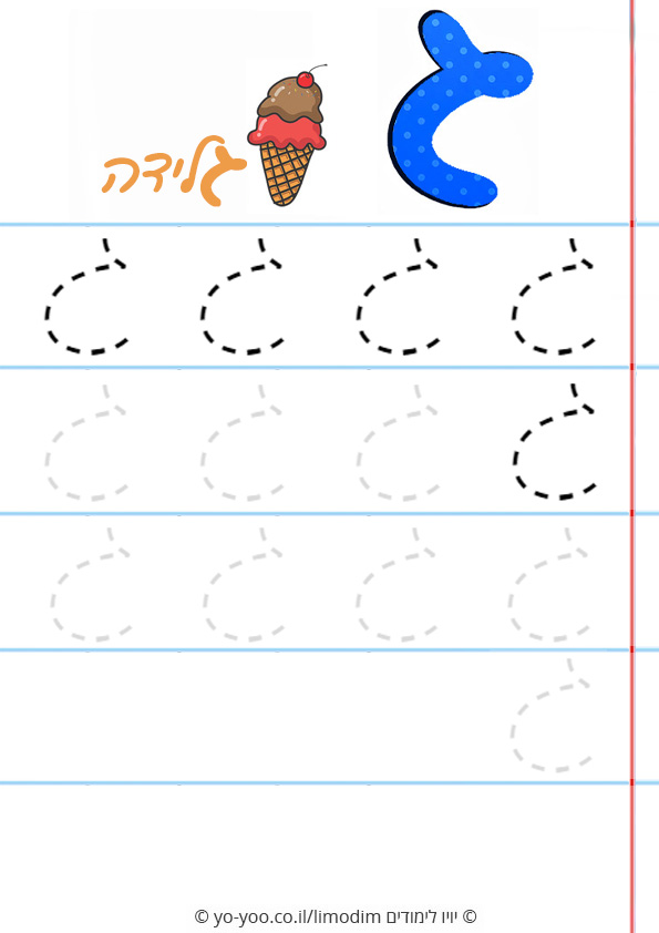 פאזל של כתיבת האות ז בכתב יד להדפסה
