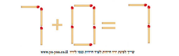 החידה : הזיזו גפרור אחד כדי שהתרגיל יהיה נכון.