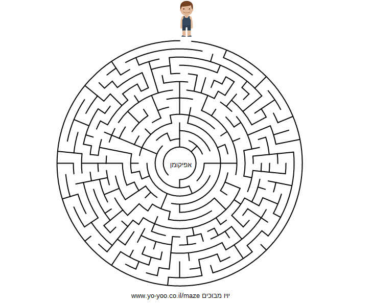 1. לחצו על כפתור "הדפסת מבוך" - הדפיסו ופתרו את המבוך 2.מבוך להדפסה במחשב - לחצו העתק על המבוך והדביקו בתוכנת בוורד או תוכנה אחרת במחשב 3.מבוך להורדה - ניתן להוריד את המבוך למחשב ולהדפיס 4. הורידו למחשב, פתחו באמצעות תוכנת צייר ופתרו |