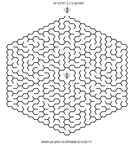 1. לחצו על כפתור "הדפסת מבוך" - הדפיסו ופתרו את המבוך 2.מבוך להדפסה במחשב - לחצו העתק על המבוך והדביקו בתוכנת בוורד או תוכנה אחרת במחשב 3.מבוך להורדה - ניתן להוריד את המבוך למחשב ולהדפיס 4. הורידו למחשב, פתחו באמצעות תוכנת צייר ופתרו |