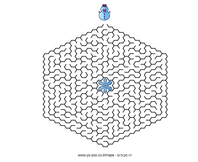 1. לחצו על כפתור "הדפסת מבוך" - הדפיסו ופתרו את המבוך 2.מבוך להדפסה במחשב - לחצו העתק על המבוך והדביקו בתוכנת בוורד או תוכנה אחרת במחשב 3.מבוך להורדה - ניתן להוריד את המבוך למחשב ולהדפיס 4. הורידו למחשב, פתחו באמצעות תוכנת צייר ופתרו |