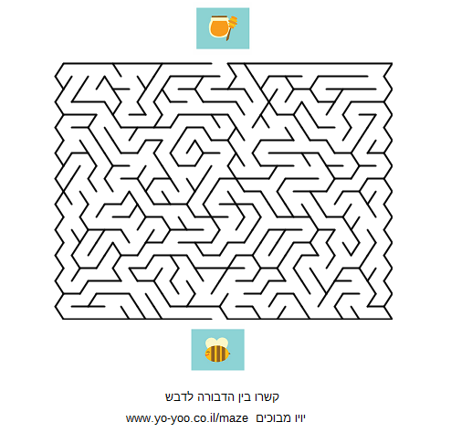 1. לחצו על כפתור "הדפסת מבוך" - הדפיסו ופתרו את המבוך 2.מבוך להדפסה במחשב - לחצו העתק על המבוך והדביקו בתוכנת בוורד או תוכנה אחרת במחשב 3.מבוך להורדה - ניתן להוריד את המבוך למחשב ולהדפיס 4. הורידו למחשב, פתחו באמצעות תוכנת צייר ופתרו |