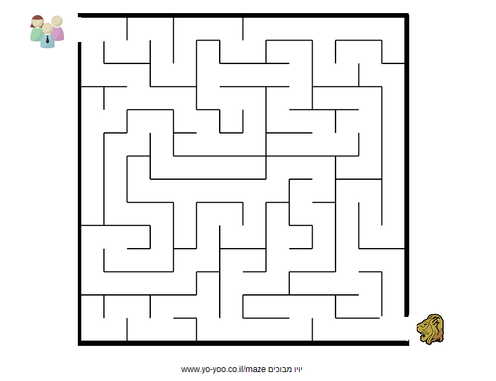 1. לחצו על כפתור "הדפסת מבוך" - הדפיסו ופתרו את המבוך 2.מבוך להדפסה במחשב - לחצו העתק על המבוך והדביקו בתוכנת בוורד או תוכנה אחרת במחשב 3.מבוך להורדה - ניתן להוריד את המבוך למחשב ולהדפיס 4. הורידו למחשב, פתחו באמצעות תוכנת צייר ופתרו |