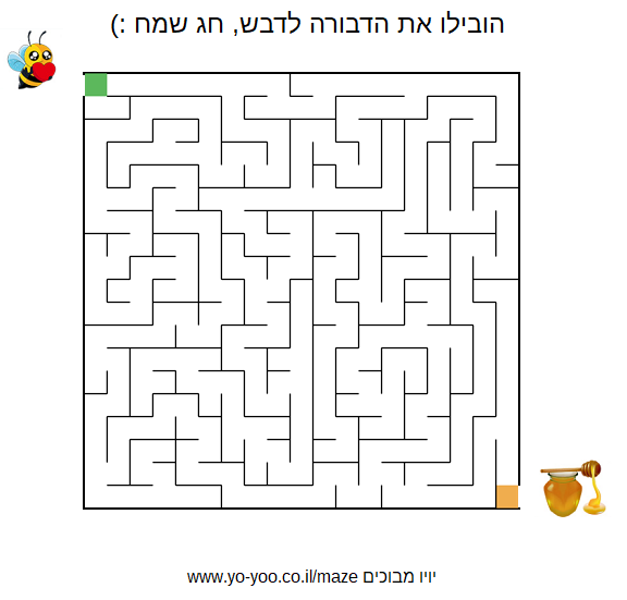 1. לחצו על כפתור "הדפסת מבוך" - הדפיסו ופתרו את המבוך 2.מבוך להדפסה במחשב - לחצו העתק על המבוך והדביקו בתוכנת בוורד או תוכנה אחרת במחשב 3.מבוך להורדה - ניתן להוריד את המבוך למחשב ולהדפיס 4. הורידו למחשב, פתחו באמצעות תוכנת צייר ופתרו |