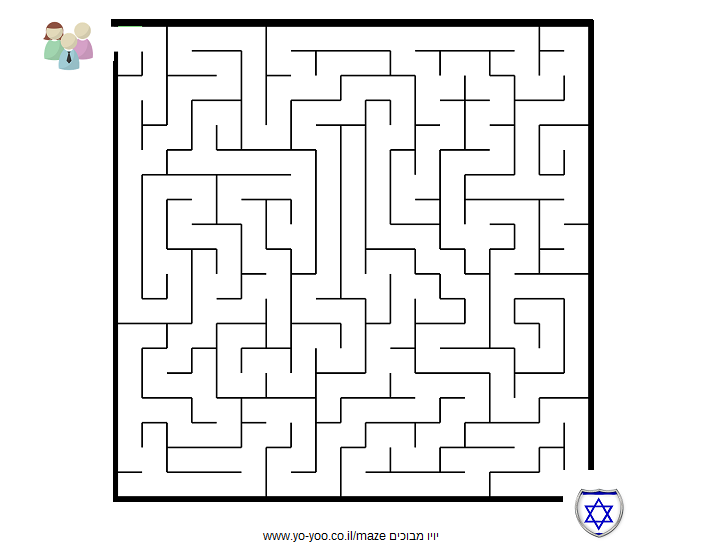 1. לחצו על כפתור "הדפסת מבוך" - הדפיסו ופתרו את המבוך 2.מבוך להדפסה במחשב - לחצו העתק על המבוך והדביקו בתוכנת בוורד או תוכנה אחרת במחשב 3.מבוך להורדה - ניתן להוריד את המבוך למחשב ולהדפיס 4. הורידו למחשב, פתחו באמצעות תוכנת צייר ופתרו |