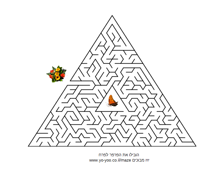 1. לחצו על כפתור "הדפסת מבוך" - הדפיסו ופתרו את המבוך 2.מבוך להדפסה במחשב - לחצו העתק על המבוך והדביקו בתוכנת בוורד או תוכנה אחרת במחשב 3.מבוך להורדה - ניתן להוריד את המבוך למחשב ולהדפיס 4. הורידו למחשב, פתחו באמצעות תוכנת צייר ופתרו |