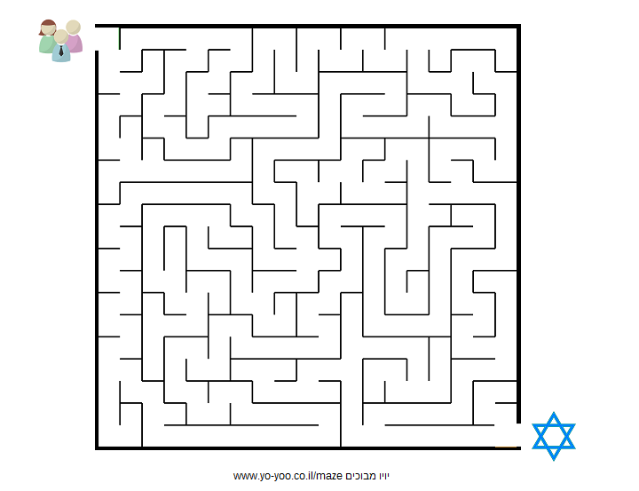 1. לחצו על כפתור "הדפסת מבוך" - הדפיסו ופתרו את המבוך 2.מבוך להדפסה במחשב - לחצו העתק על המבוך והדביקו בתוכנת בוורד או תוכנה אחרת במחשב 3.מבוך להורדה - ניתן להוריד את המבוך למחשב ולהדפיס 4. הורידו למחשב, פתחו באמצעות תוכנת צייר ופתרו |