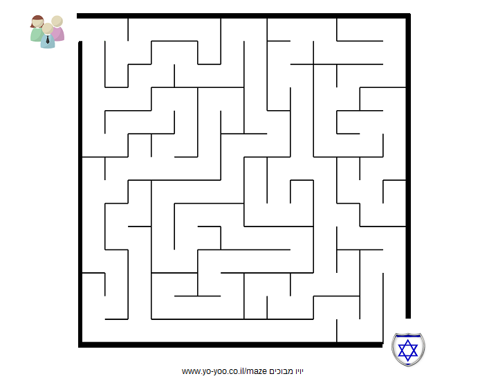 1. לחצו על כפתור "הדפסת מבוך" - הדפיסו ופתרו את המבוך 2.מבוך להדפסה במחשב - לחצו העתק על המבוך והדביקו בתוכנת בוורד או תוכנה אחרת במחשב 3.מבוך להורדה - ניתן להוריד את המבוך למחשב ולהדפיס 4. הורידו למחשב, פתחו באמצעות תוכנת צייר ופתרו |