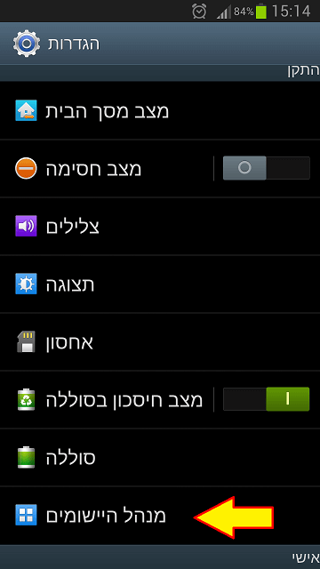 שלב ראשון כניסה להגדרות ואז מנהל ישומים