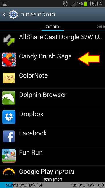 באנדרואיד- גלקסי 2-3 עם גירסא 1.4.2 ומעלה - עקבו אחרי החצים הצהובים