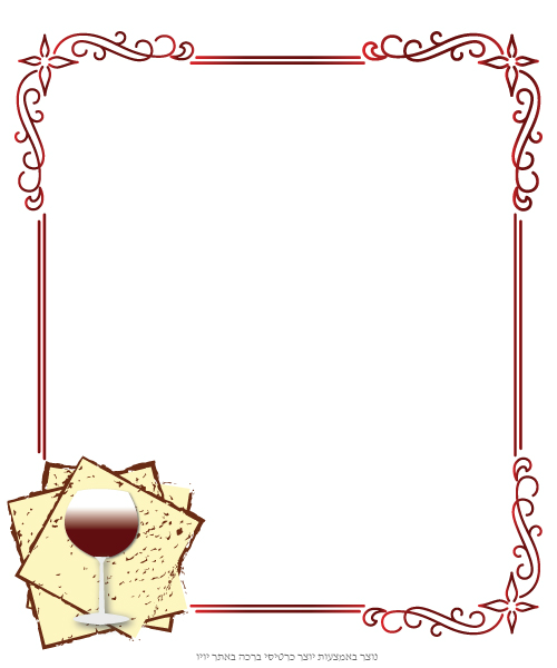 כרטיס ברכה לפסח עם מסגרת יפה מצה ויין , יצירת ברכה לפסח במחשב אונליין בחינם כמובן