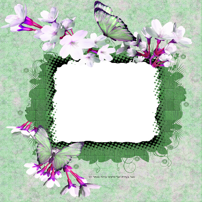 כרטיס ברכה מעוצב עם מסגרת בצבע ירוק עם פרפר ופרחים
