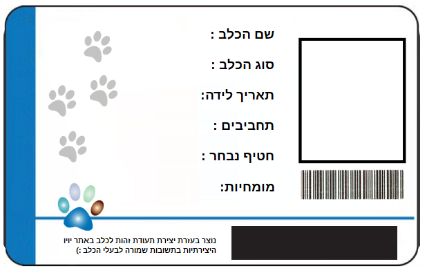 ניתן לערוך הכל ! כולל התמונה של הכלב כמובן , הטקסט בכחול מצד שמאל ואפילו המספר תז של הכלב למטה