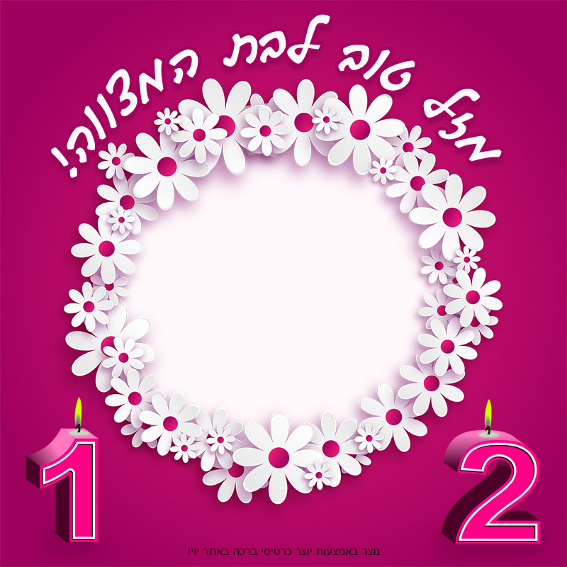 כרטיס ברכה מעוצב לבת מצווה בחינם עם מסגרת פרחים יפה