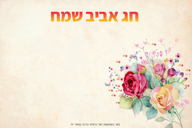 חג אביב שמח – כרטיס ברכה מעוצב כרטיס ברכה מעוצב לחג האביב כתבו ברכה מקורית משלכם, הוסיפו תמונות , סטיקרים ועוד והדפיסו או שמרו את הכרטיס כתבו פה את הברכה שלכם לחצו פעמיים בכדי לערוך את הטקסט