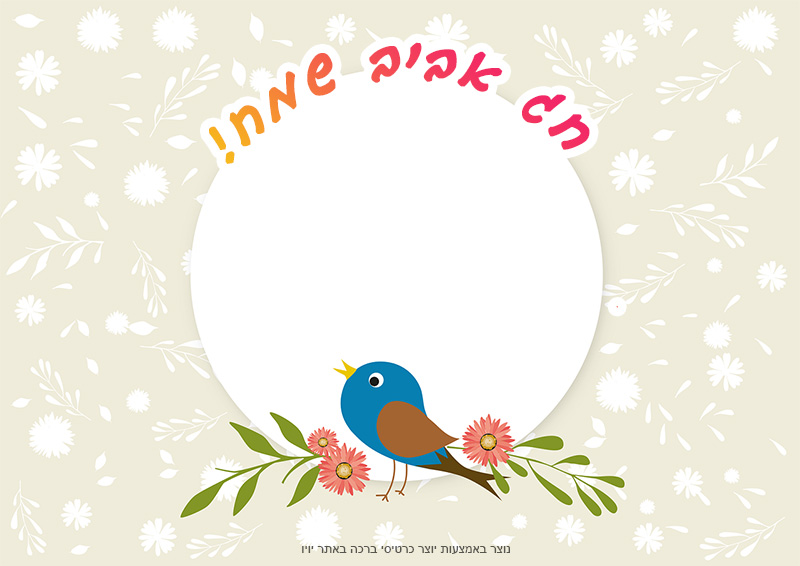 כרטיס ברכה חג אביב שמח לחג פסח כרטיס ברכה מעוצב ויפה לחג האביב לחג פסח כתבו ברכה מקורית משלכם, הוסיפו תמונות , סטיקרים ועוד והדפיסו או שמרו את הכרטיס כתבו פה את הברכה שלכם לחצו פעמיים בכדי לערוך את הטקסט