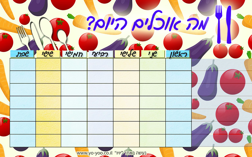 תפריט שבועי למילוי- מלאו מה שתרצו בצד ימין וגם מה שתרצו בתוך התפריט