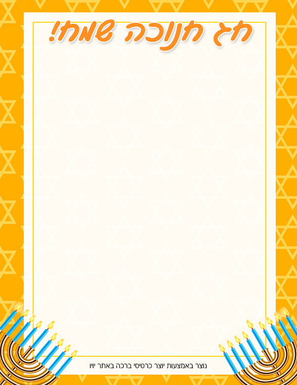 כרטיס ברכה ריק לחנוכה כרטיס ברכה מעוצב לחנוכה ריק מלאו את הטקסט והברכה שלכם ושלחו כתבו פה את הברכה שלכם לחצו פעמיים בכדי לערוך את הטקסט
