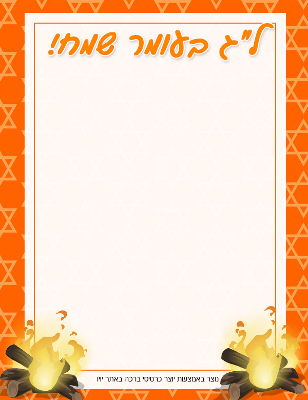 ברכה לל"ג בעומר ברכה יפה מעוצב ללג בעומר ערכו את הטקסט והוסיפו טקסט אישי שלכם כתבו פה את הברכה שלכם לחצו פעמיים בכדי לערוך את הטקסט