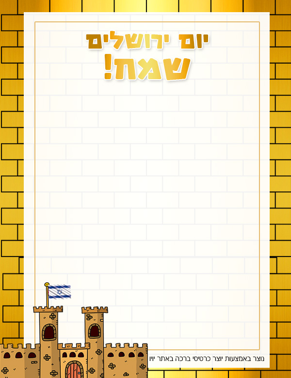 כרטיס ברכה ריק ליום ירושלים כרטיס ברכה ליום ירושלים שאפשר לכתוב עליו כרטיס ברכה ריק עם אפשרות עריכת טקסט אישי כתבו פה את הברכה שלכם לחצו פעמיים בכדי לערוך את הטקסט