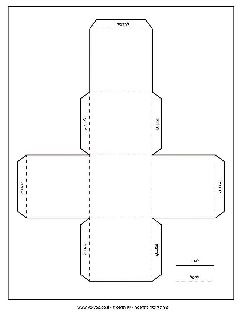 גוזרים ומדביקים את הקוביה לפי הקווים.