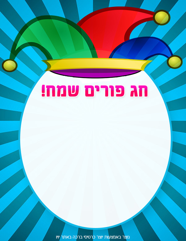 כרטיס ברכה לפורים בצורת ליצן , כרטיס ברכה מעוצב לחג פורים
